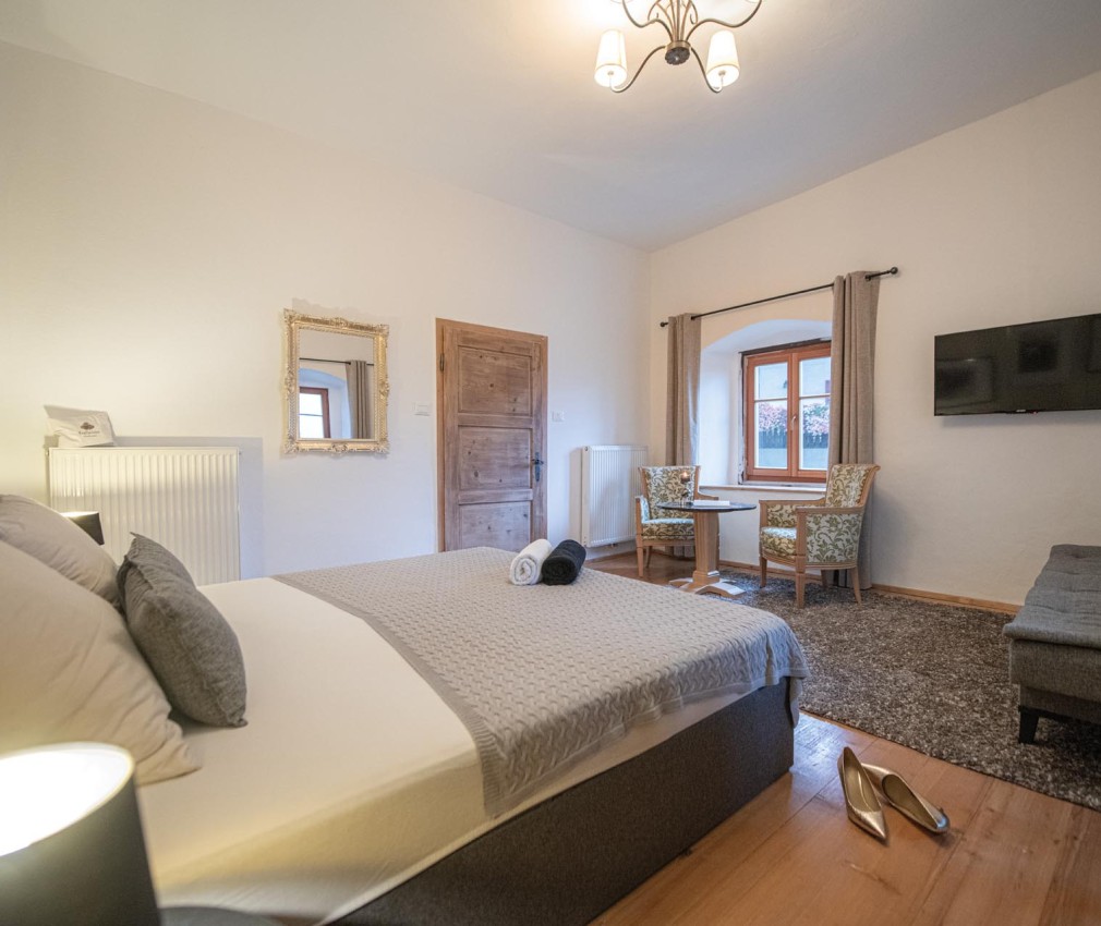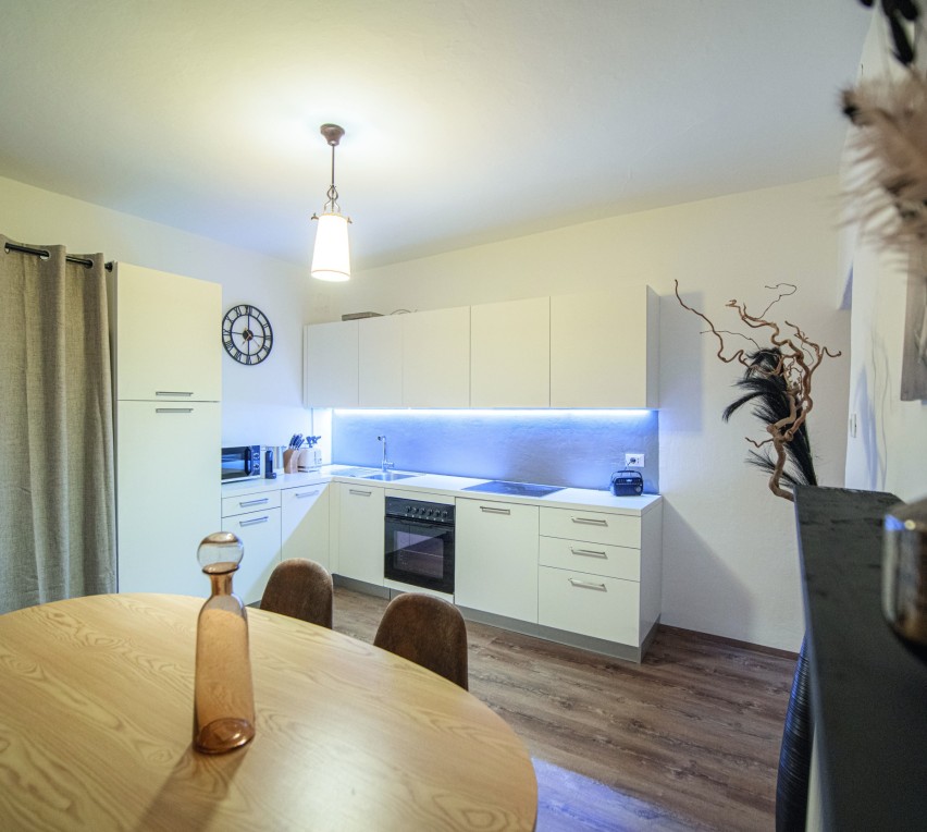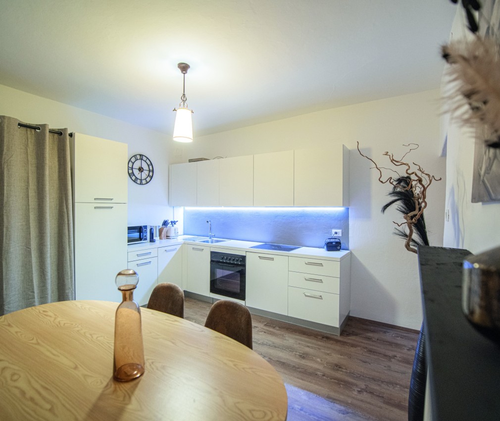 Die historischen Mauern und die charmante Fassade des Hauses erzählen von vergangenen Zeiten. Doch kaum trittst Du durch die Eingangstür, erwartet Dich ein helles, großzügiges und modernes Apartment. Hoch oben im 3. Stock, am ruhigen Dorfrand, findest Du die perfekte Oase für erholsame Nächte. Die tief eingesetzten Fenster verraten es schon: Diese Mauern sind massiv. Im Sommer bleibt die Wohnung wunderbar kühl, und im Winter hält die Wärme lange an. Magst Du es gerne dunkel zum Schlafen? Schließe einfach die klassischen Holzjalousien und genieße die behagliche Stille. Mach den goesslturm zu Deinem zweiten Zuhause – perfekt, um die verborgenen Schätze Südtirols neu zu entdecken.