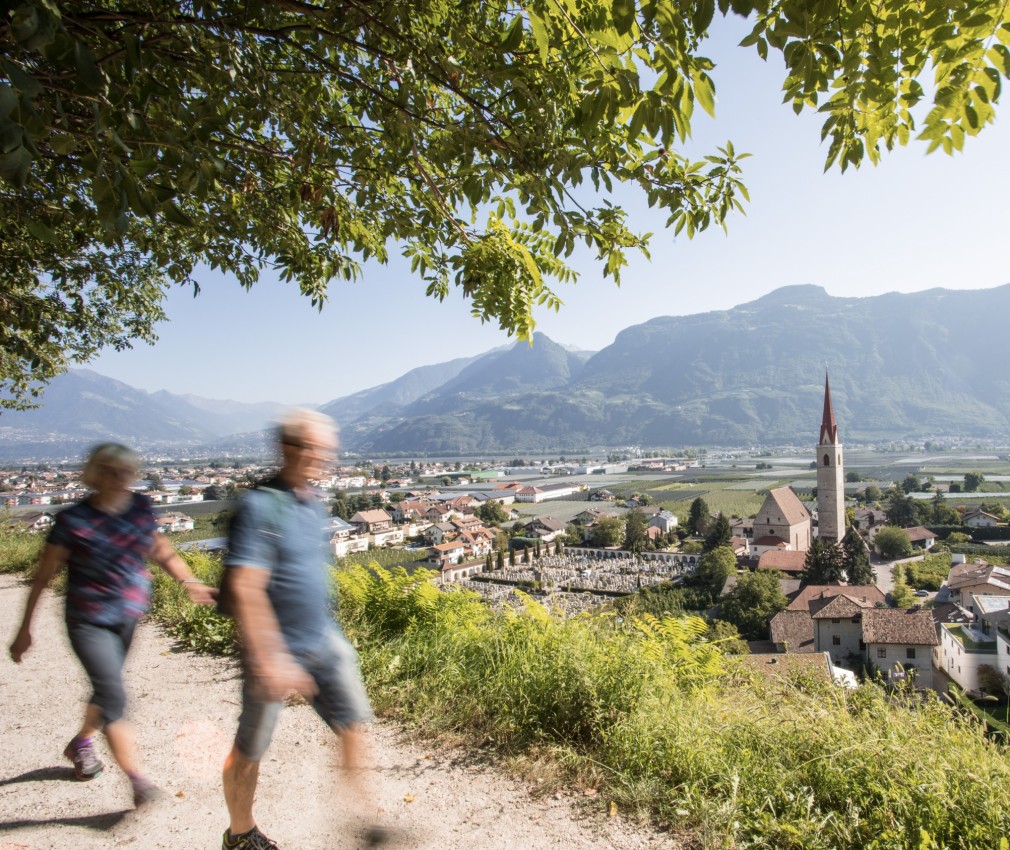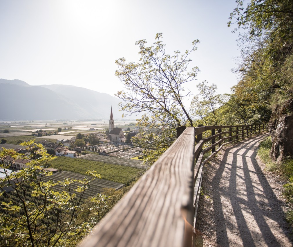 Dal terzo piano della nostra torre, si schiude una vista mozzafiato. Ammira dall’alto il pittoresco borgo di Lana e l’ampia Valle dell’Adige che si estende ai tuoi piedi. La regione, conosciuta come Burgraviato, è rinomata per il suo clima mite, ideale per la coltivazione di numerose varietà di mele e la produzione di vini pregiati. Lana e i suoi dintorni sono un vero e proprio paradiso per gli amanti della buona tavola. La cucina locale propone il meglio delle antiche tradizioni di montagna reinterpretate in chiave moderna. Delizia il tuo palato con un gustoso piatto di canederli e prelibate pietanze a base di mele, degusta i vini locali e lasciati conquistare dai sapori più autentici dell’Alto Adige.