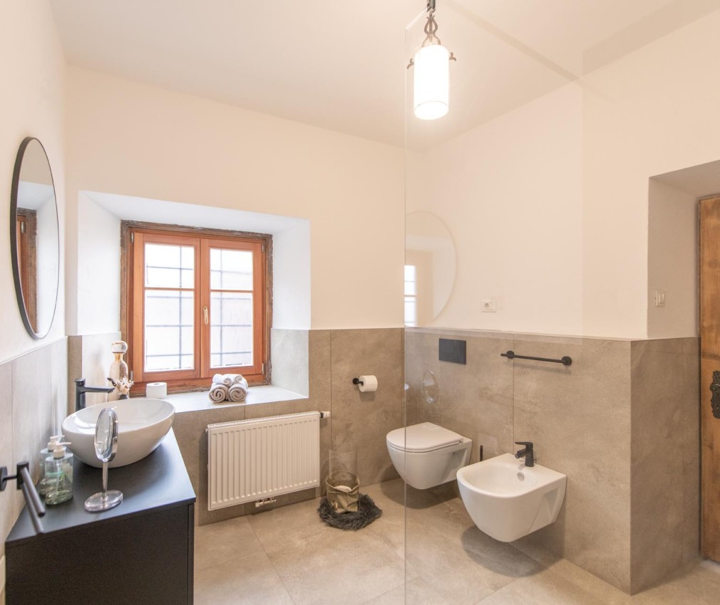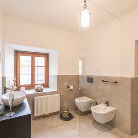 Le antiche mura e l’affascinante facciata dell’edificio raccontano di un passato lontano. Ma appena varcata la soglia, ti accoglie un appartamento luminoso, spazioso e moderno. Al terzo piano, in una zona tranquilla, troverai il rifugio perfetto per serene notti ristoratrici. Le finestre profondamente incassate lasciano intuire la solidità delle mura: l’appartamento rimane piacevolmente fresco in estate, mantenendo a lungo il calore in inverno. Preferisci dormire al buio? Chiudi semplicemente le tradizionali persiane in legno e goditi la quiete. Fai della nostra torre la tua seconda casa e scopri le gemme nascoste dell’Alto Adige.